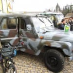 «Автобус «Пежо» нашої родини. Ця ідея виникла у нас на Святвечір за столом. «Уазік» придбали підприємці Косівщини та Коломийщини. Фарбували транспорт в захисні кольори ми разом з батьком».– розповів Тарас Мельничук.