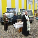 Окрім автомобілів «Пежо» та «УАЗ» на фронт передали дві «буржуйки», а також півтонни яблук, два відра смальцю, ковбаси, медикаменти і дитячі малюнки. Машини освятив священик, волонтер та голова обласної благодійної організації «Діти милосердя» Василь Довганюк, який багато місяців провів в зоні АТО, в тому числі і в Дебальцевому. Він закликав громаду не бути байдужою і максимально допомагати волонтерам та бійцям на передовій.